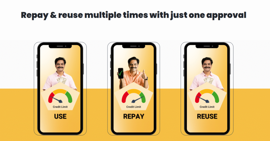 🔹 Use: Once your loan is approved, you can start using the available credit limit whenever you need it.